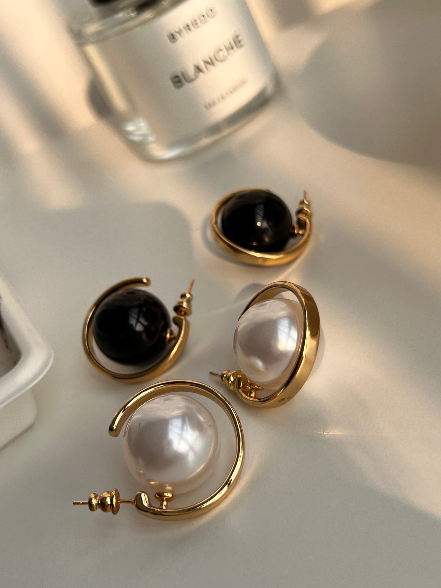 S925 Silver Plated 14k Gold Pearl Shell Zircon Sterling Silver Earrings