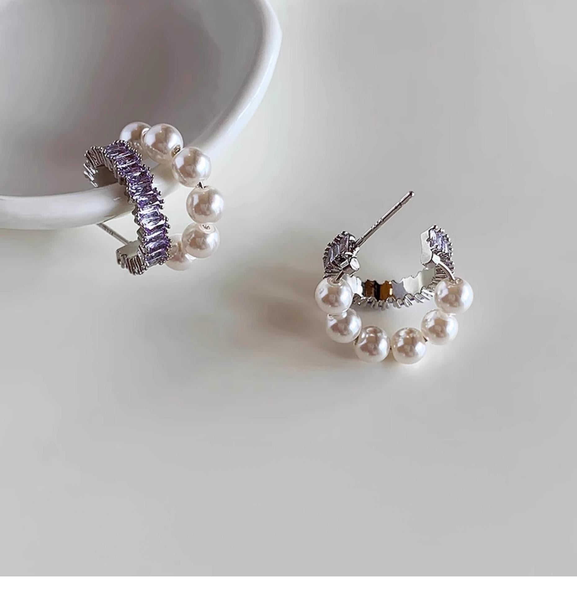 Unique Pearl Hoop Stud Earrings