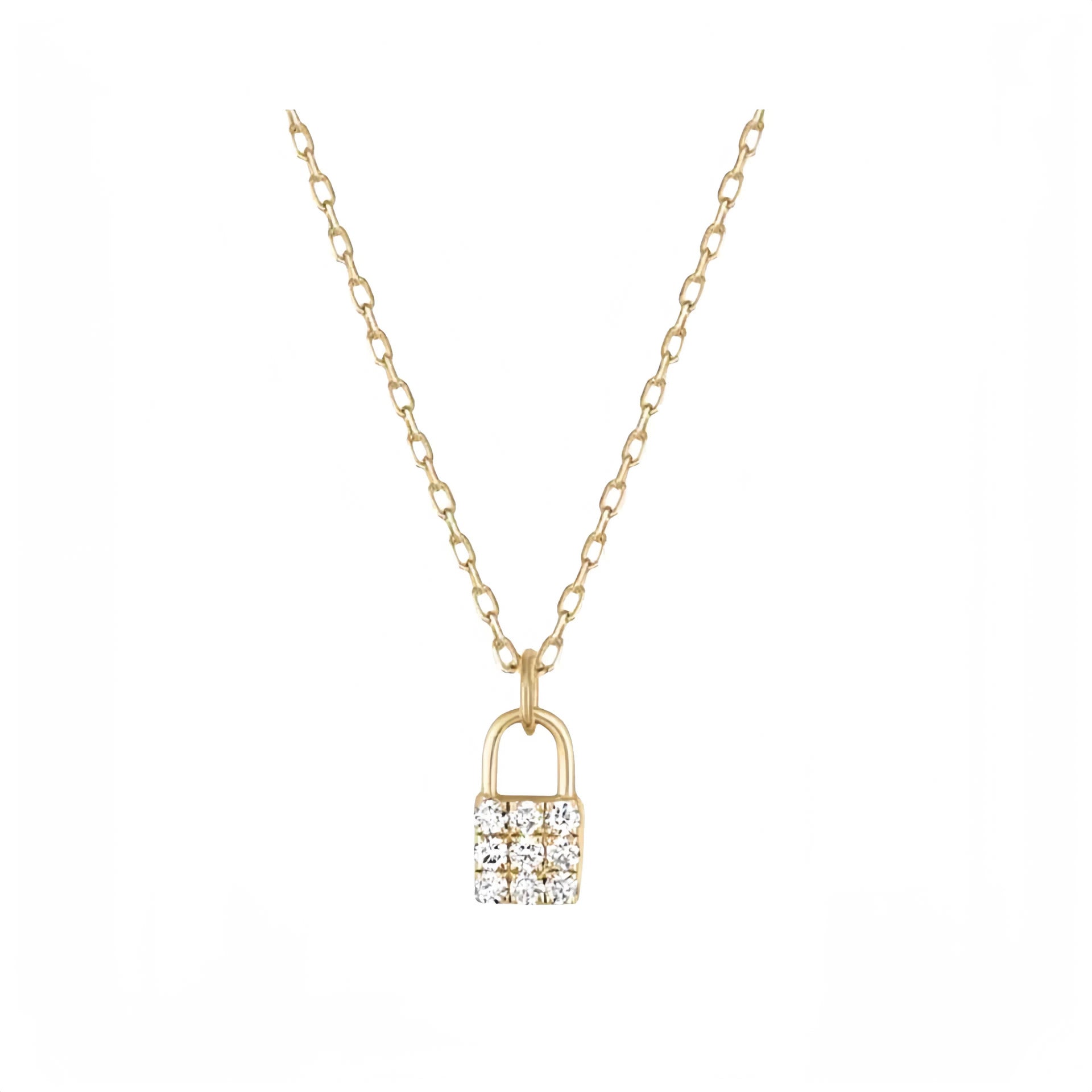 S925 Sterling Silver 14K Gold Plated Full Diamond Lock Necklace for Women