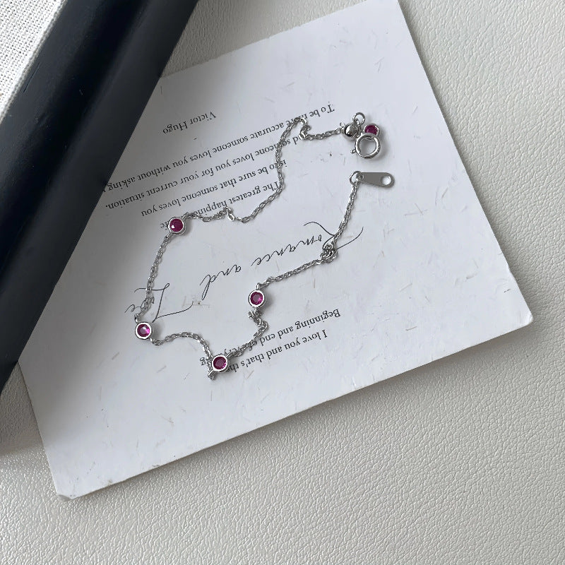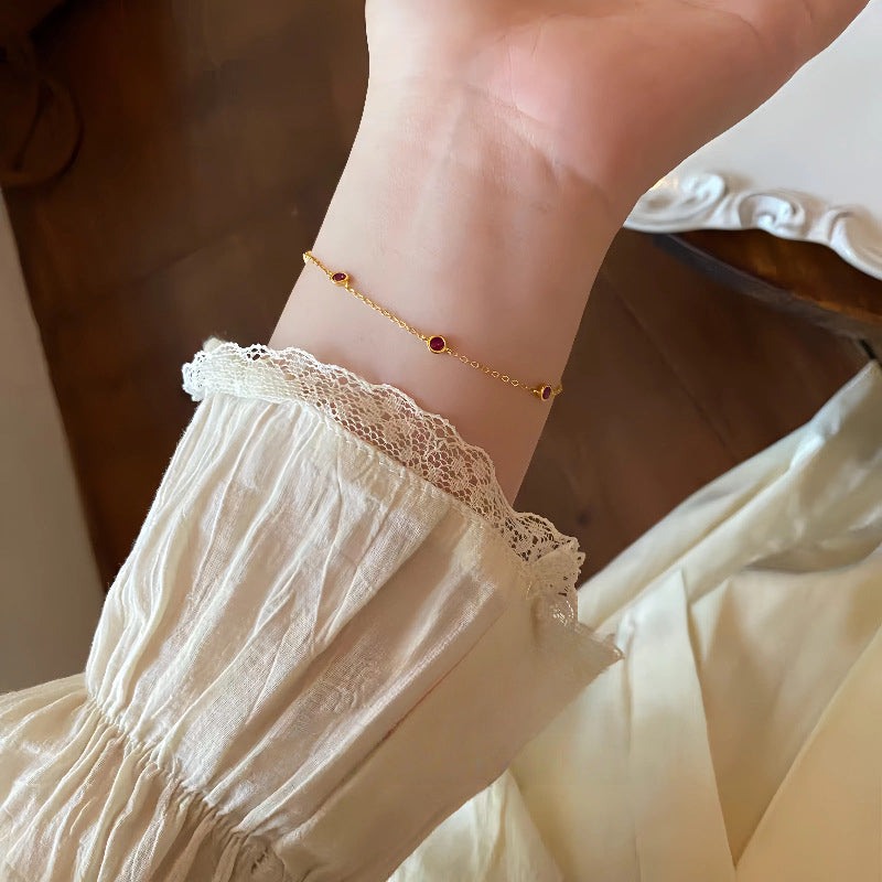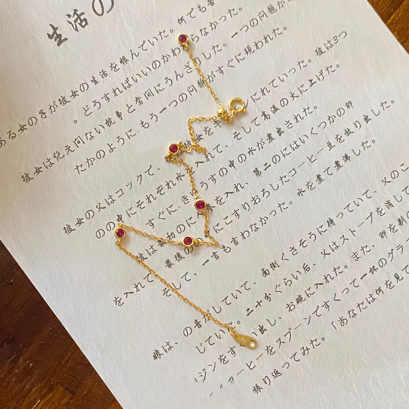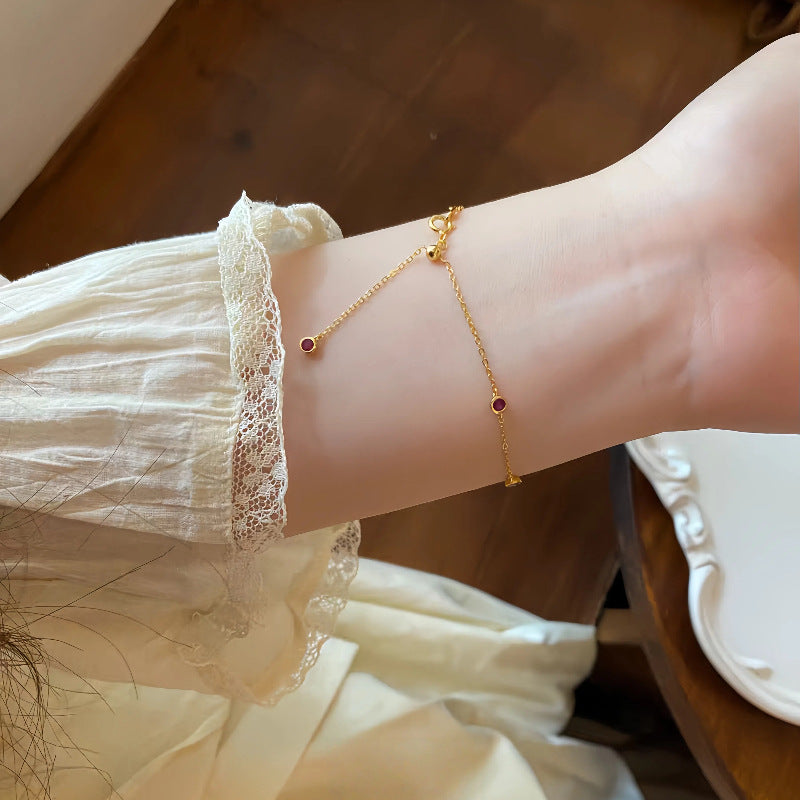 S925 Sterling Silver 18K Gold Plated Ruby Mini Zodiac Year Bracelet