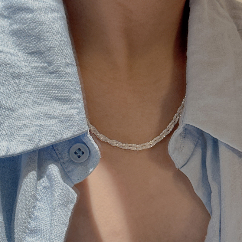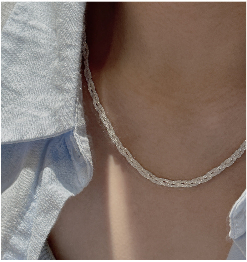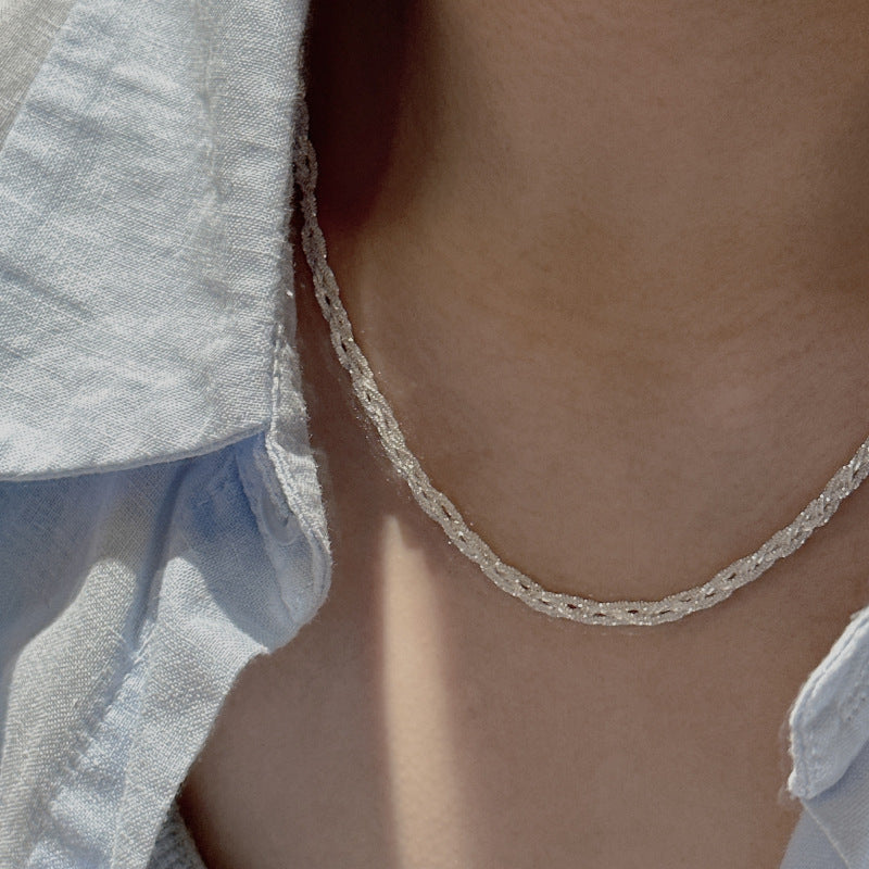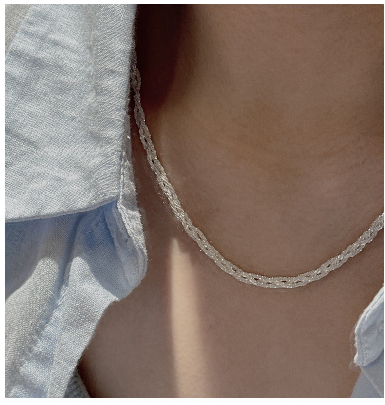 S925 Sterling Silver Korean Version Niche Design Sense Vintage Woven Snowflake Necklace