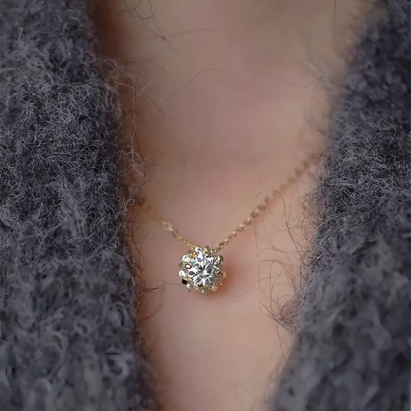 S925 Sterling Silver Plated 14K Gold Small Sun Necklace