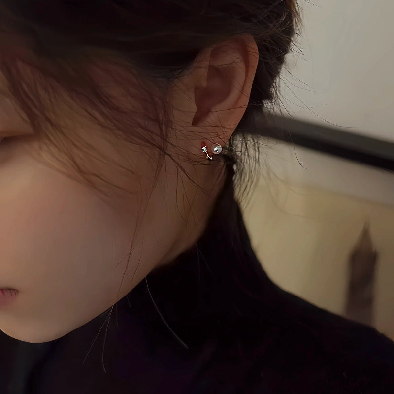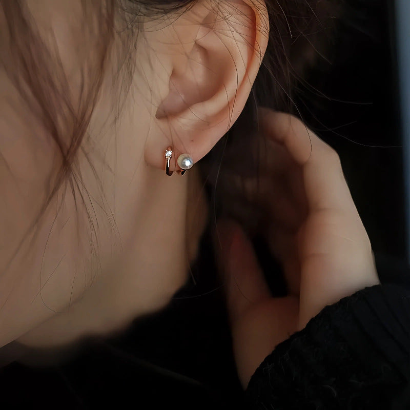 S925 Sterling Silver Rose Gold Plated Pearl Shell Stud Earrings